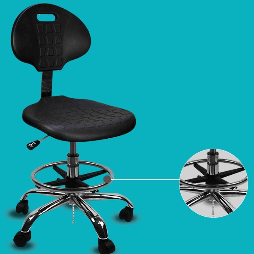 משטח המושב של כסא העבודה האנטי סטטי מיוצר על ידי תפירה או דפוס מקשה אחת. משטח הכסא עשוי בדרך כלל מקצף PU אנטי סטטי או מעור PU. ניתן לעצב אותו גם על ידי חומר פוליפרופילן. חלקי המתכת האחרים בגוף הכסא עוברים דרכם. הטיפול המיוחד משיג את האפקט האנטי-סטטי, וגלגל הכסא יוצר גוף פריקה אלקטרוסטטי מאוחד מהגלגל המוליך ומשטח המושב וגוף הכסא, ובכך למעשה מפחית את הפגיעה הנגרמת על ידי חשמל סטטי.